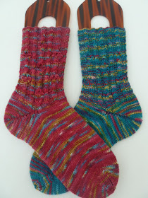 Schon vor einiger Zeit sind diese Socken mit Sonja's Regenbogenzopf fertig geworden, aber erst heute haben sie es in voller Pracht auf Foto geschafft.